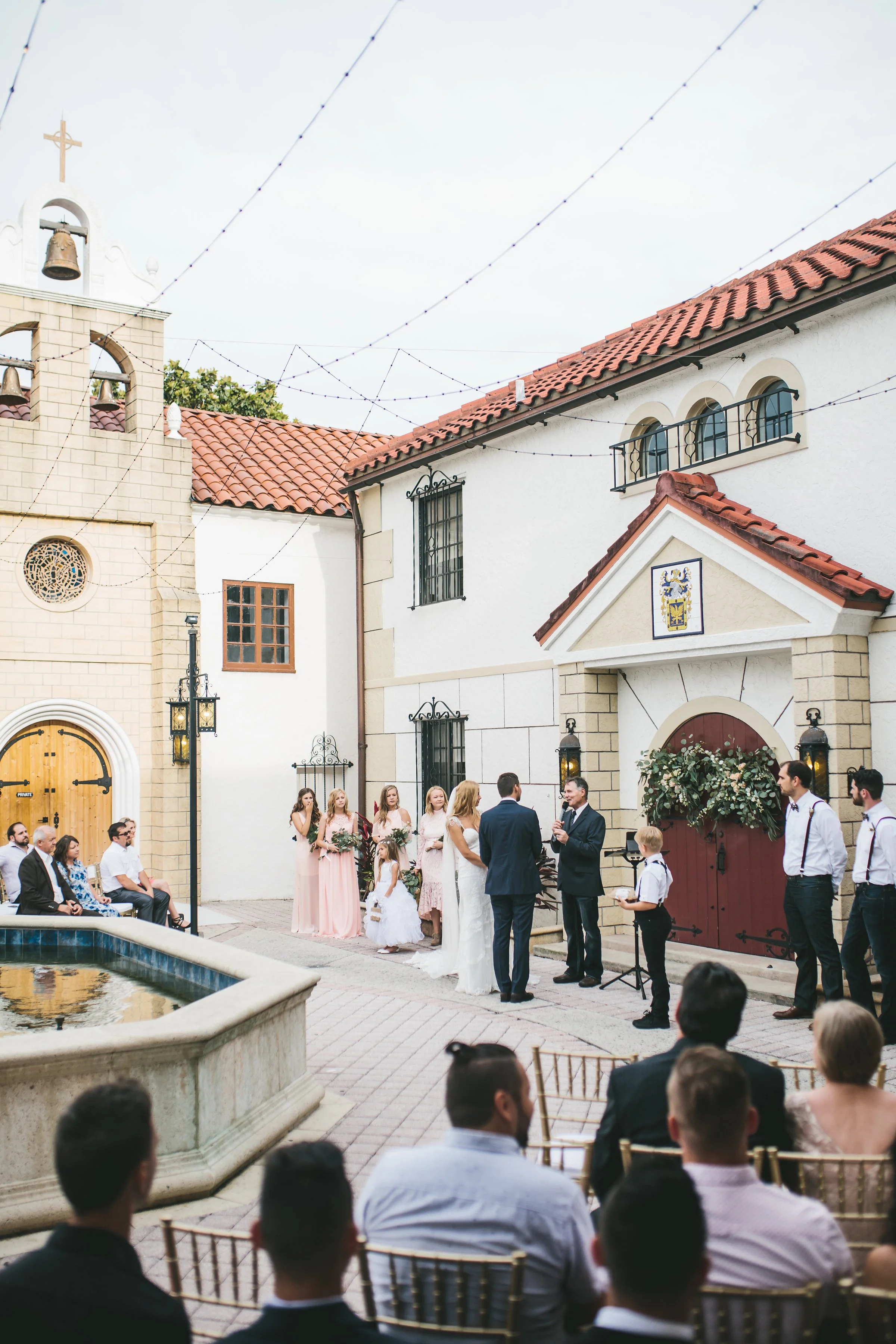In a European town plaza replica: when you don’t want to travel to Europe but you’d love a European-themed ceremony, this is the perfect solution. Complete with arches, balconies, and plenty of other historical architectural details, this can transport guests to a different time and place effortlessly.